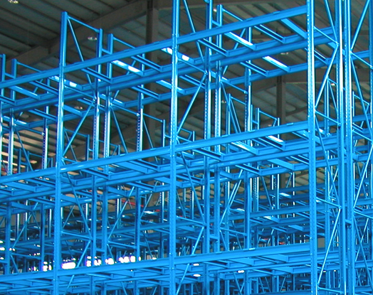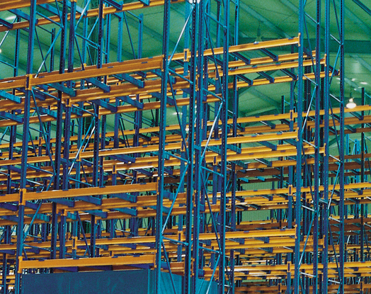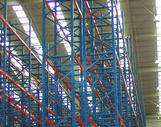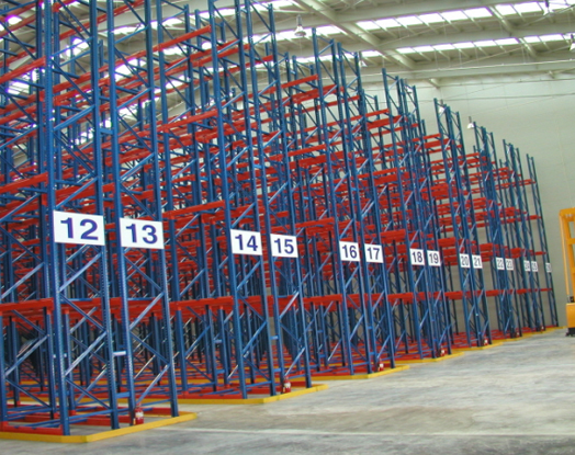 최소의 통로 폭으로 최대의 공간 효율을 낼 수 있는 랙시스템으로 일반 파렛트 랙에 비하여 약 ½ 의 통로폭을 사용함으로써