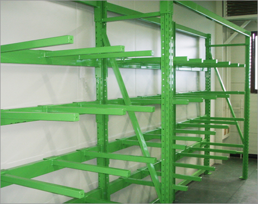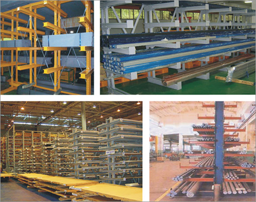 기본 후레임에 암을 부탁하여 물품을 보관하는 형태로 파이프등 길고 보관이 어려운 물품을 보관하는데 적합한 랙입니다.